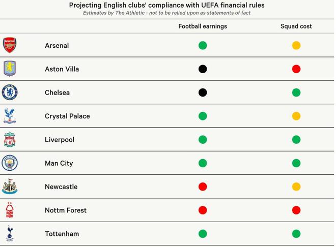 据《TA》消息,本赛季参加欧战的9支英超球队正面临欧足联两项关键财务规则,足球收入规则与阵容成本规则的严格审查。