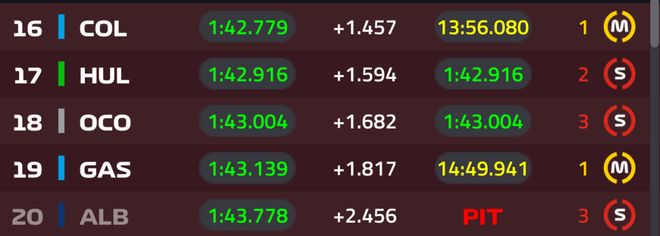Q1起表后,阿尔本和霍肯伯格分别上墙,所幸比赛没有中断太久,法拉利本站比赛表现抢眼,Q1最后4分钟汉密尔顿还占据着头排,三次练习赛两度领先的诺里斯最后时刻刷紫,维斯塔潘也来到第二的位置,勒克莱尔第三,此前一直没有输出成绩的小kimi,最后时刻刷到第10。遭到淘汰的是阿尔本、霍肯伯格、克拉平托、奥康以及加斯利。值得一提的是,克拉平托在停表以后还上墙,给自己整了个大活,虾哥表示,他比拉蒂菲还要差……