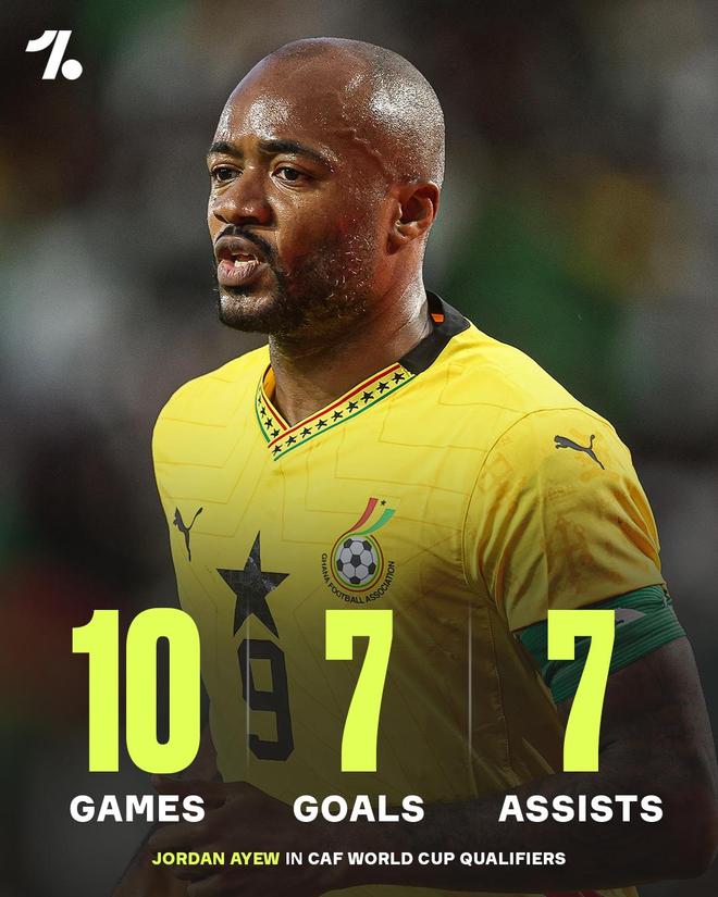 - 世界杯 | 老兵不死!34岁乔丹阿尤10场世非预7球7助,带领加纳晋级