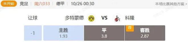竞足 周六033 德甲 多特蒙德VS科隆