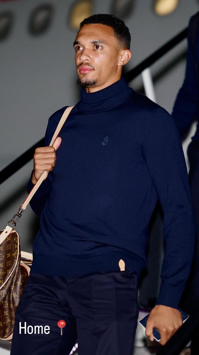 在跟随皇家马德里抵达利物浦后,阿诺德在社交媒体晒出照片,并配文:“回家了。”