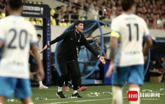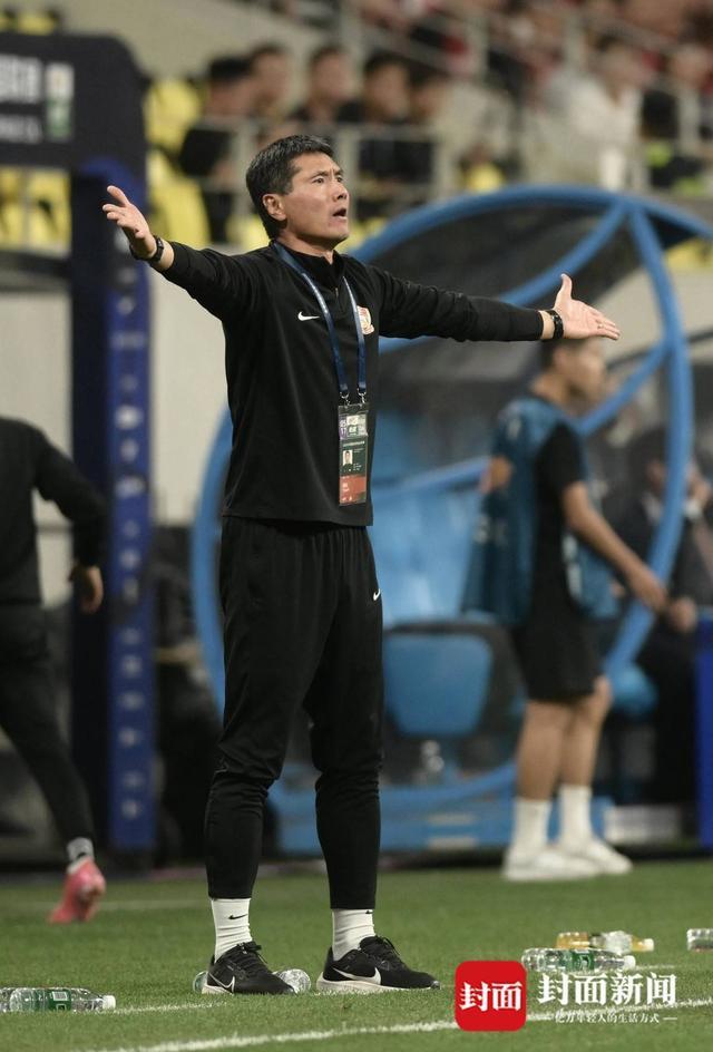 邵佳一在中超联赛指挥青岛西海岸比赛。陈羽啸摄