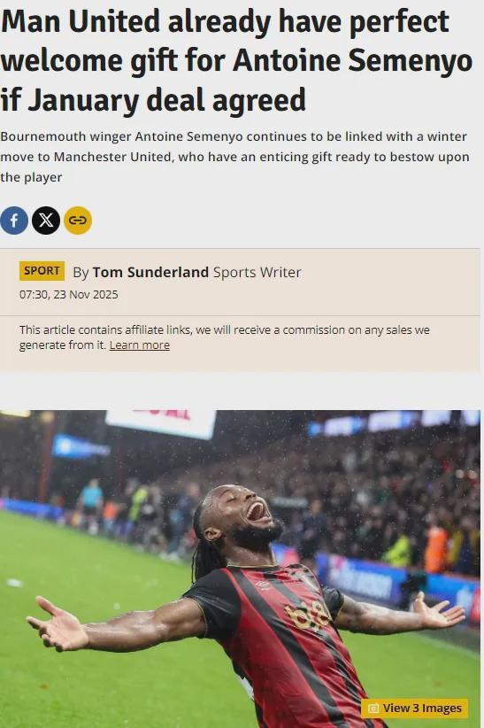 不过根据TA的说法,利物浦和曼城才是目前领先塞梅约争夺战的球队,这名边锋合同中价值6500万英镑的违约金条款一月份就将生效。