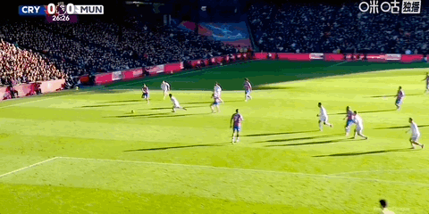 第54分钟,齐尔克泽小角度抽射打进个人赛季首球,曼联1-1水晶宫!