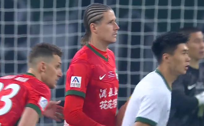 第45+4分钟,法比奥禁区内打门碰到了马亚的手上,VAR介入后,北京国安获得点球,随后法比奥主罚命中,上演梅开二度,比分2-0再下一城。