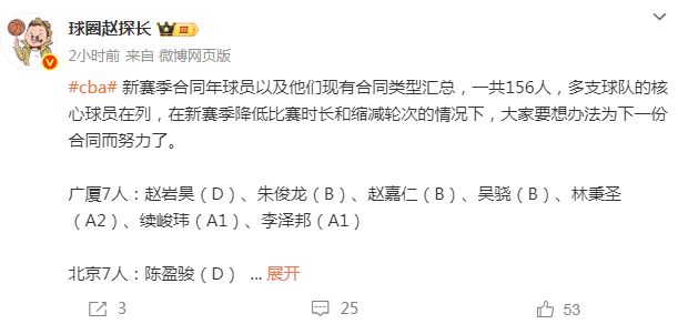 - CBA | CBA新季156人处合同年:郭艾伦付豪领衔13位顶薪5队11人合同年